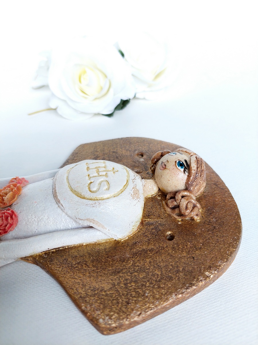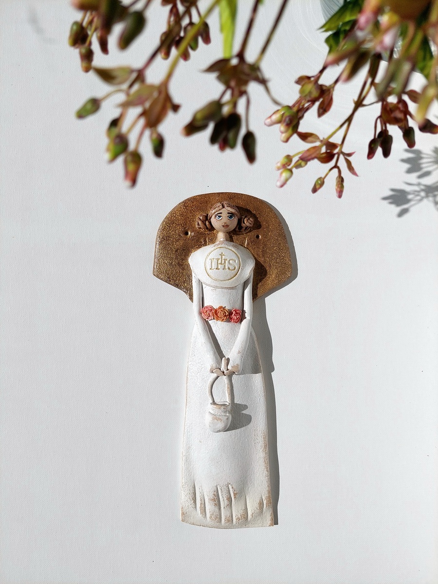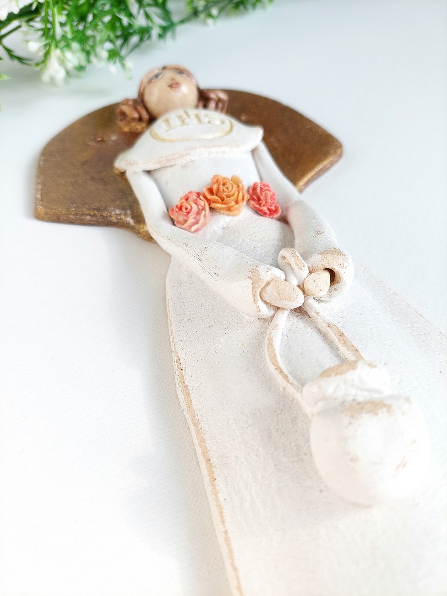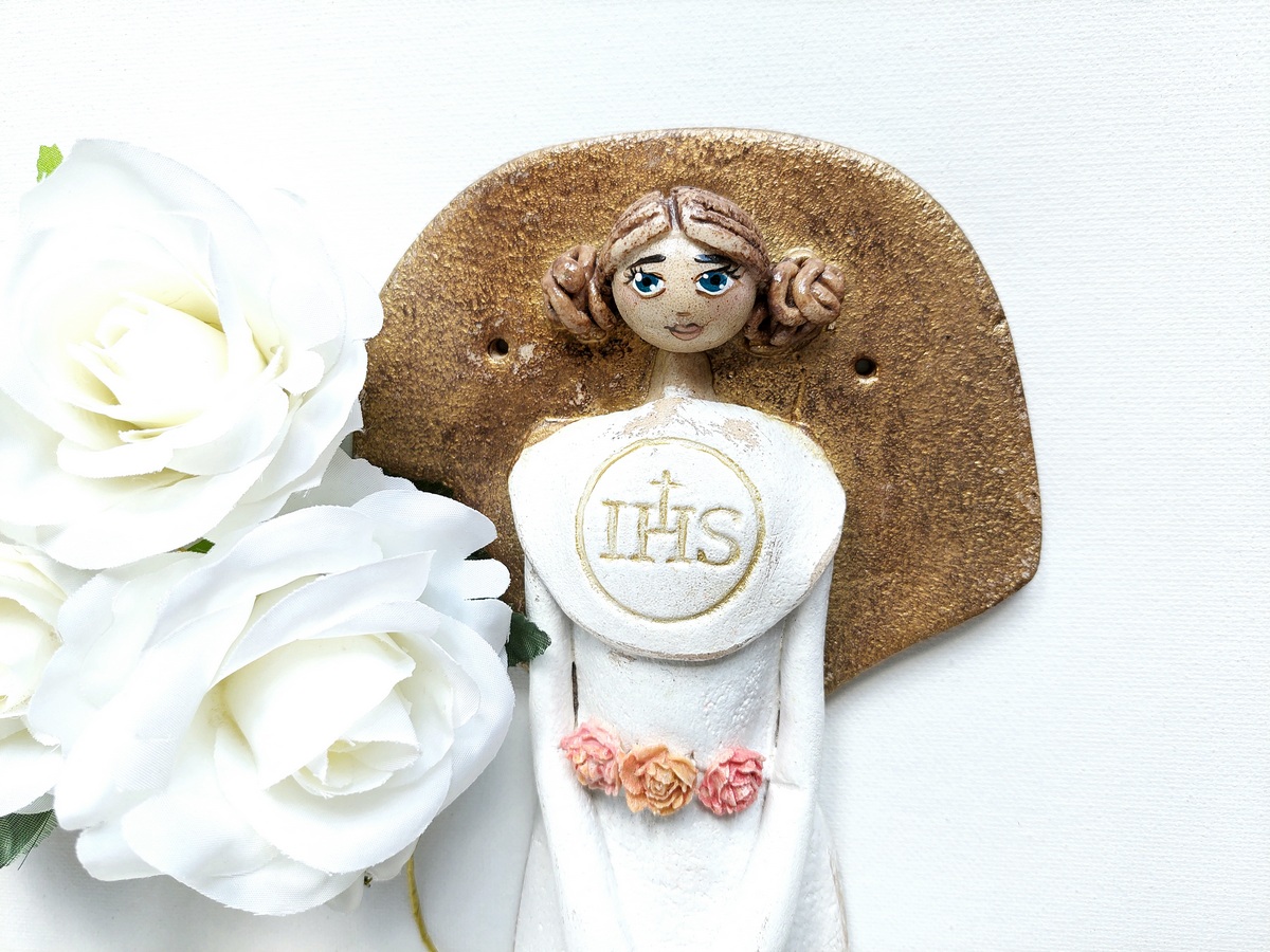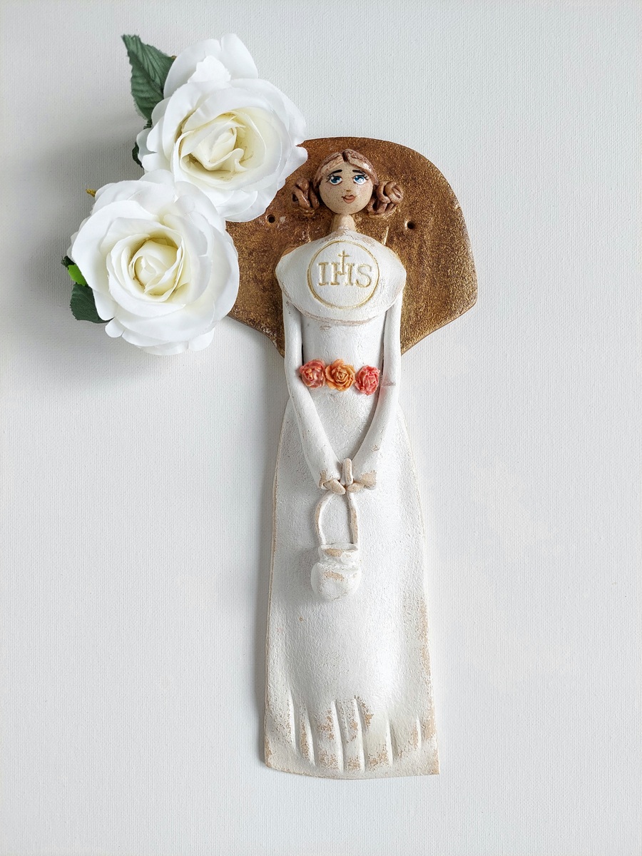 Jeśli szukasz pomysłu na niebanalny prezent komunijny dla dziewczynki, jesteś w idealnym miejscu 🙂 Nie ma chyba lepszej pamiątki tego ważnego sakramentu, niż piękny i wyjątkowy Anioł, który nie tylko będzie upamiętniał to ważne religijne wydarzenie, jakim jest przyjęcie Komunii Świętej, ale będzie również piękną, minimalistyczną i subtelną ozdobą pokoju każdej dziewczynki 🙂