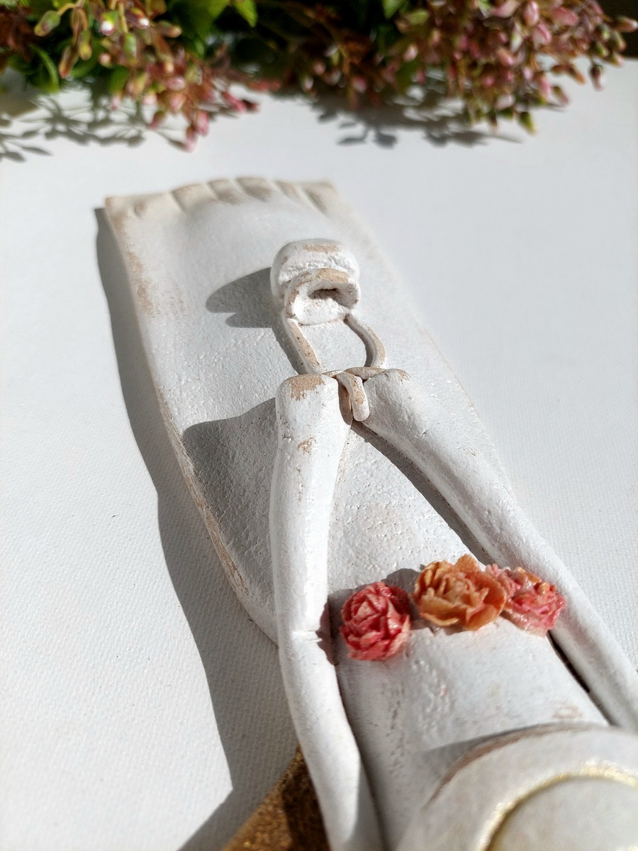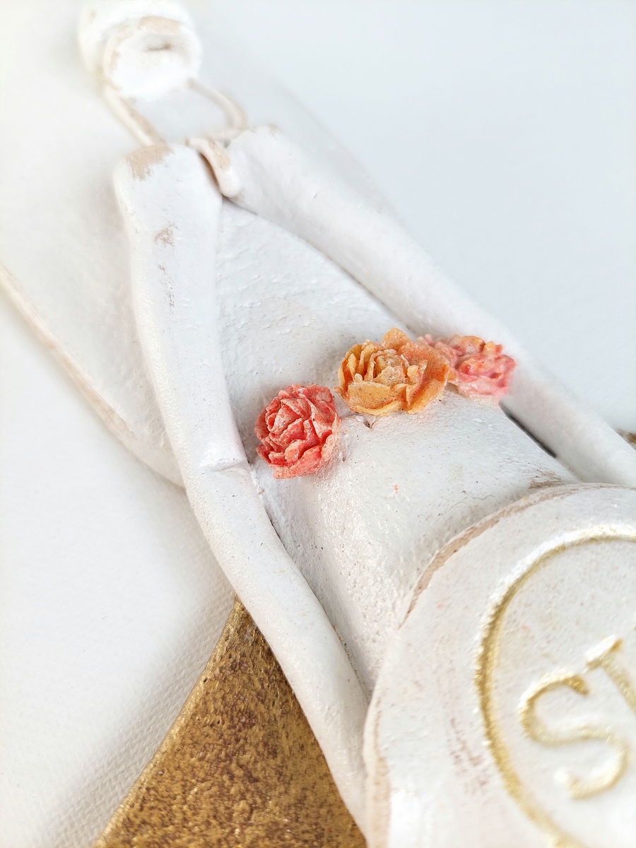 Do malowania moich Aniołów używam farb akrylowych, a do utrwalenia kolorów oraz zabezpieczenia figurki pokrywam je lakierem bezbarwnym. Każda figurka ma tasiemkę satynową w dopasowanym kolorze, umożliwiającą jej zawieszenie na ścianie.