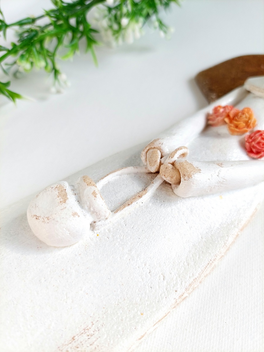 Figurka jest wykonana z masy solnej. Jest naprawdę trwała i odporna na upływ czasu (niektóre moje figurki mają już dobrze ponad 10 lat, i nadal mają się świetnie :))